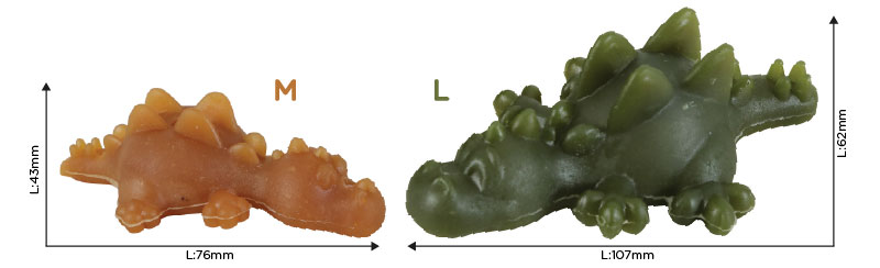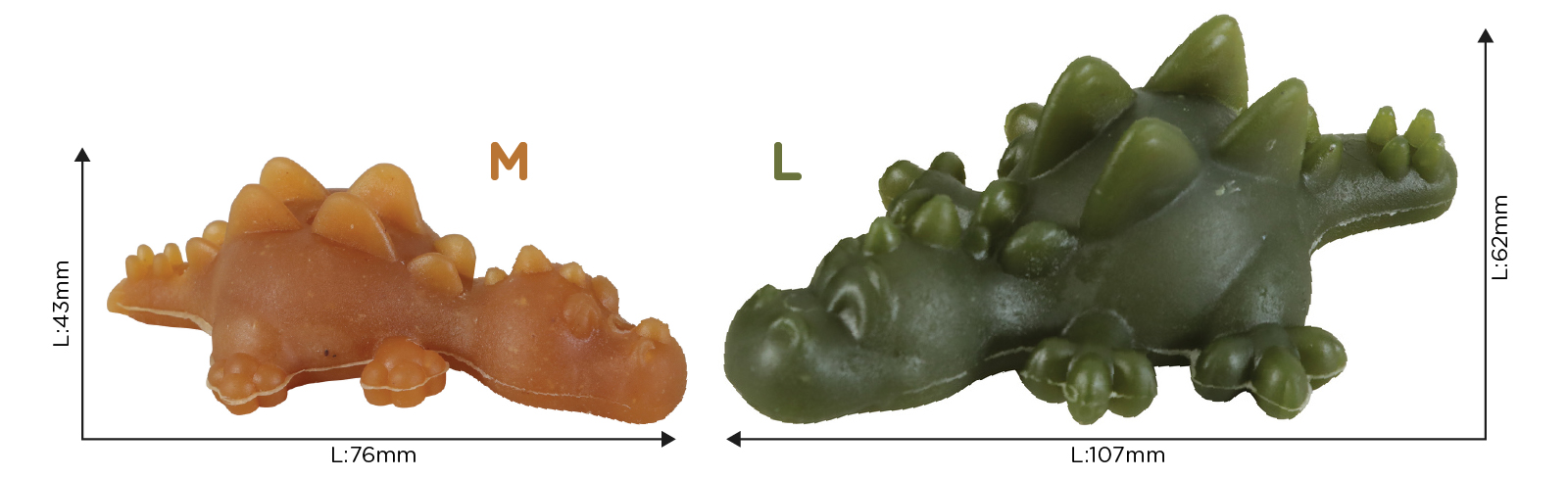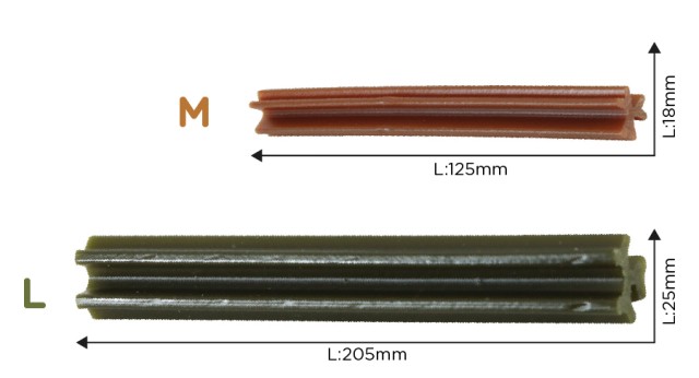 Tyto pamlsky jsou k dostání ve dvou velikostech a jsou vhodné pro všechny psy. Poskytují zážitek zpohodlného a účinného žvýkání bez ohledu na druh zvířete.
