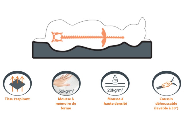 ➜ Výhody: dokonale se přizpůsobí morfologii zvířete – MEMORY nabízí optimální pohodlí a ulevuje při problémech s klouby.