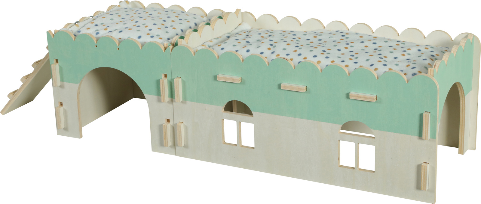 Skvěle padnou ke kolekci Neopark! Domečky mají stejný zelený odstín jako králičí výběh Neopark. Díky tomu harmonicky zapadnou do vašeho interiéru. K dostání jsou dva modely: malý domek vybavený žebříkem a měkkou dekou na střeše pro větší pohodlí a velký domek, rovněž s příjemnou dekou na střeše.