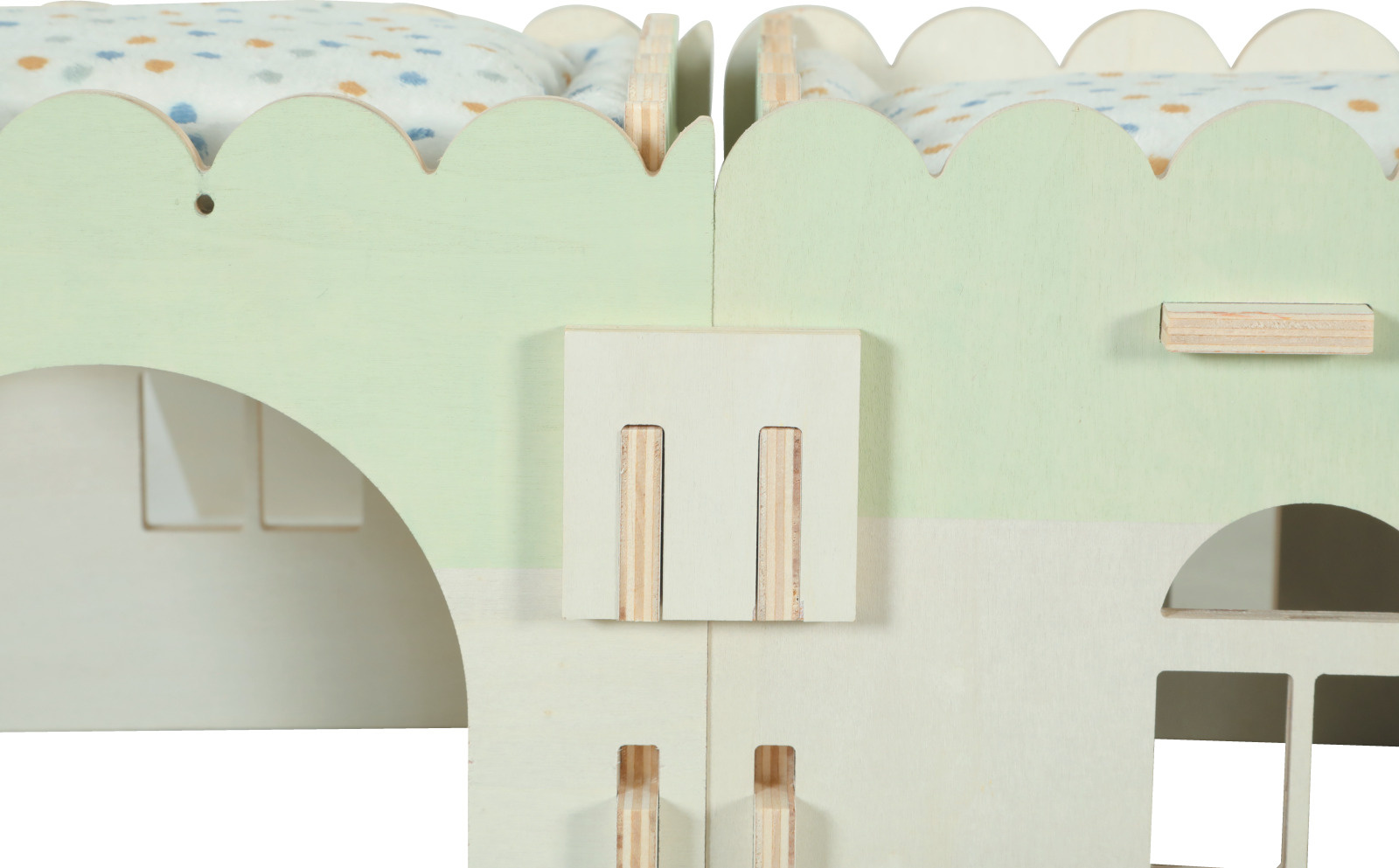 Tyto dva chytré domky lze spojit a vytvořit tak větší modulární obytný prostor. Váš zvířecí společník si v něm bude moct vytvořit útulné a hřejivé hnízdečko.